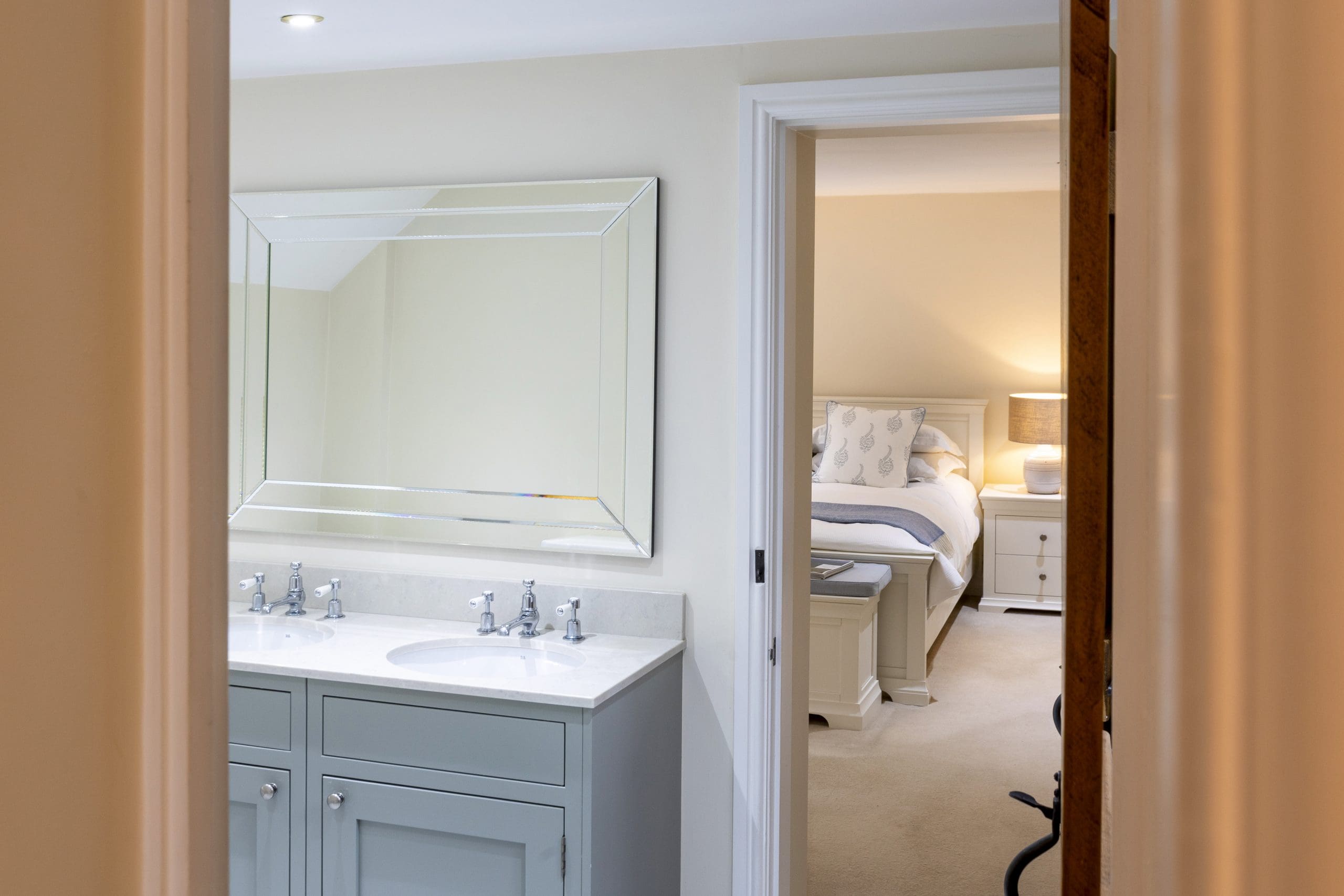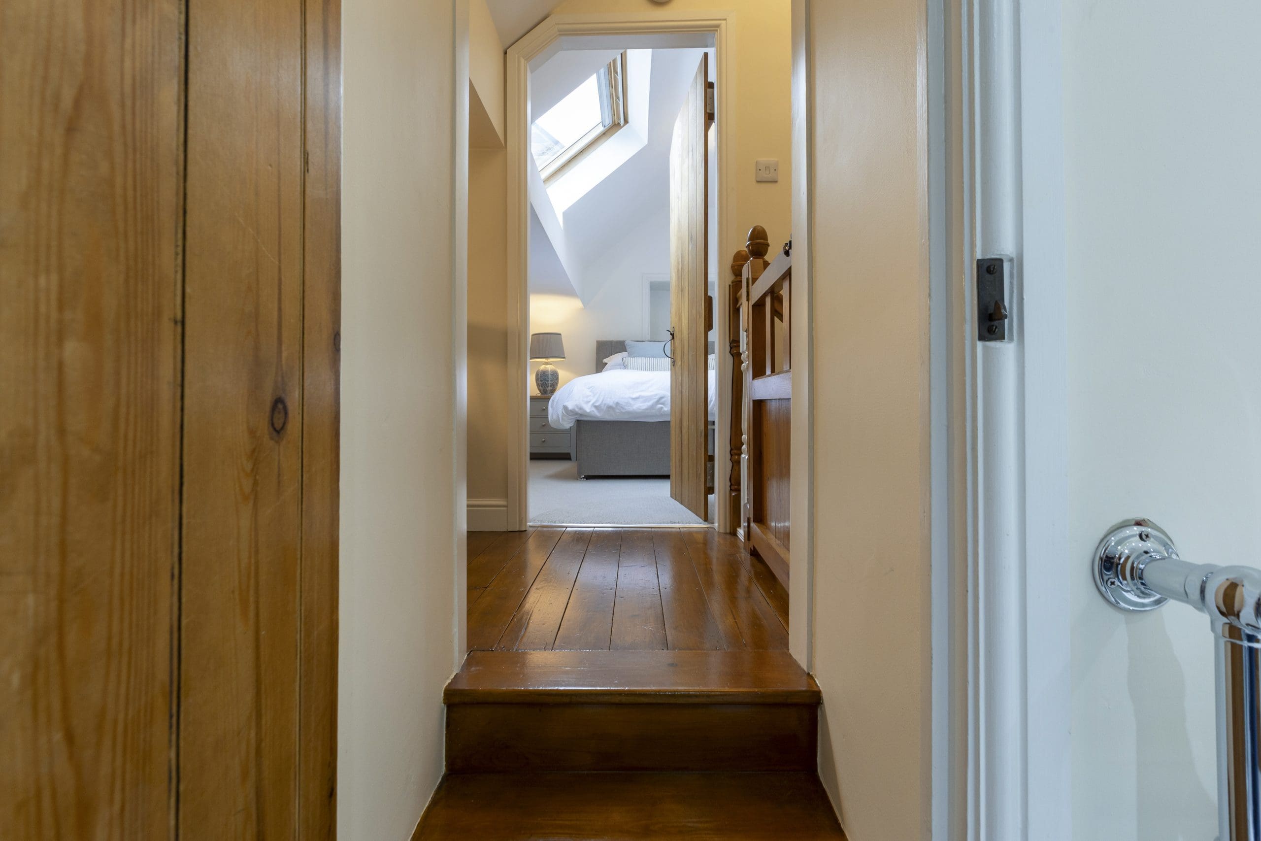 The staircase leading from the kitchen takes you to the first floor with bedroom 2 at the top on the right, on the left is a jack and jll bathroom with leading through to the master bedroom.