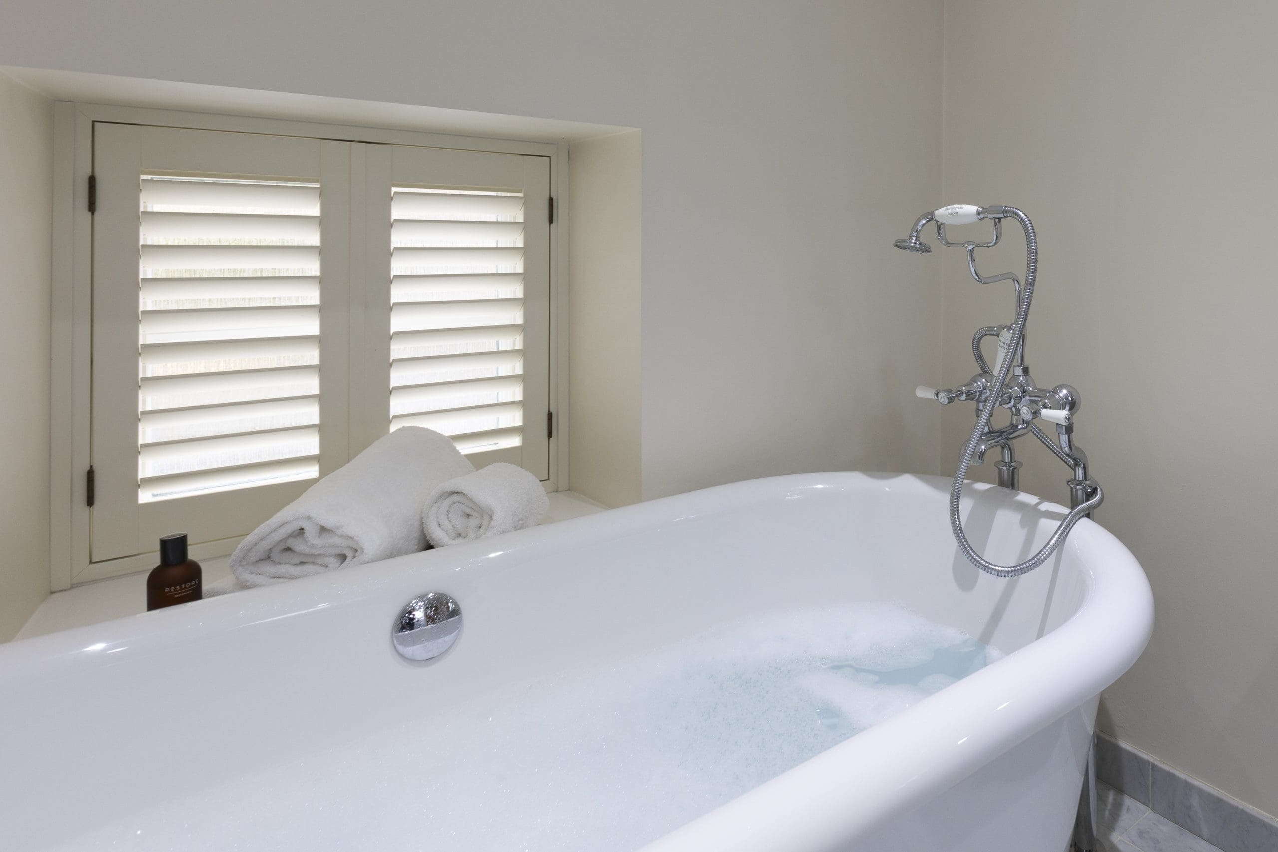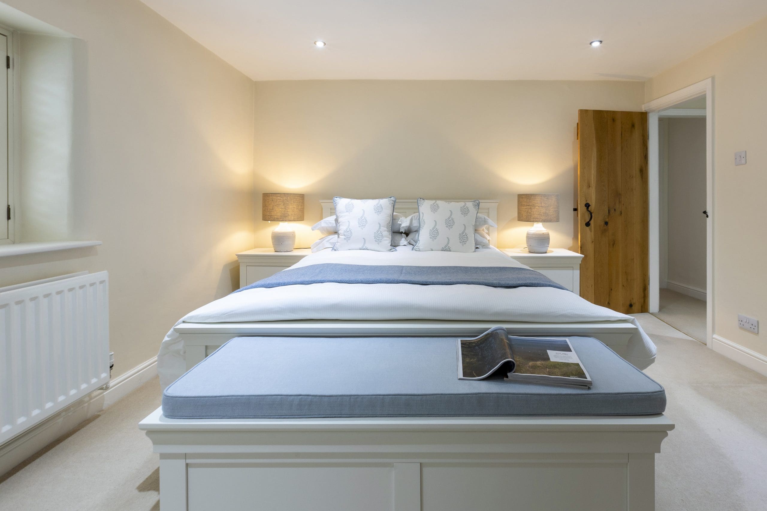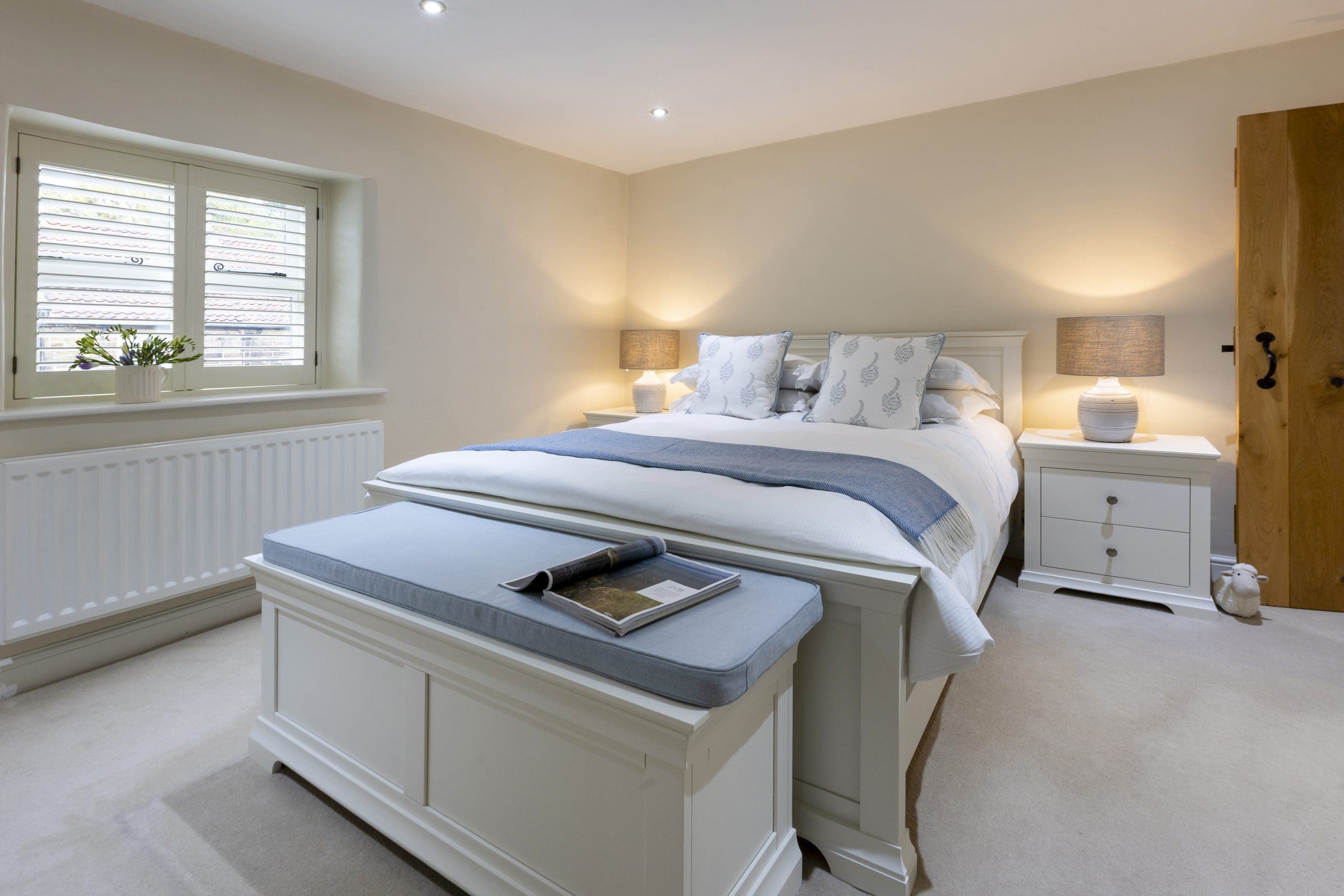 Upstairs, tranquillity reigns across four beautifully appointed bedrooms, which have each been designed with your total comfort in mind. Sink into soft linens, rest your head against plush pillows, and relax in the soothing tones of each inviting space – exactly what you need after a long day of invigorating countryside exploration! The master bedroom has a king sized bed with door leading through to the family bathroom featuring a stunning walk-in shower and a luxurious roll-top bath beside a shuttered window – perfect for a soothing soak, surrounded by the whispers of nature. On the other side of the family bathroom is a bedroom with superking bed that can be made up as a double or twin, default is a superking and please request if you would like made up as twins on booking. There are two other bedrooms one having a small double in it and the other is a single room which will ensure a comfy stay for all other house guests. There is second bathroom with shower on the ground floor for guests using these two bedrooms.