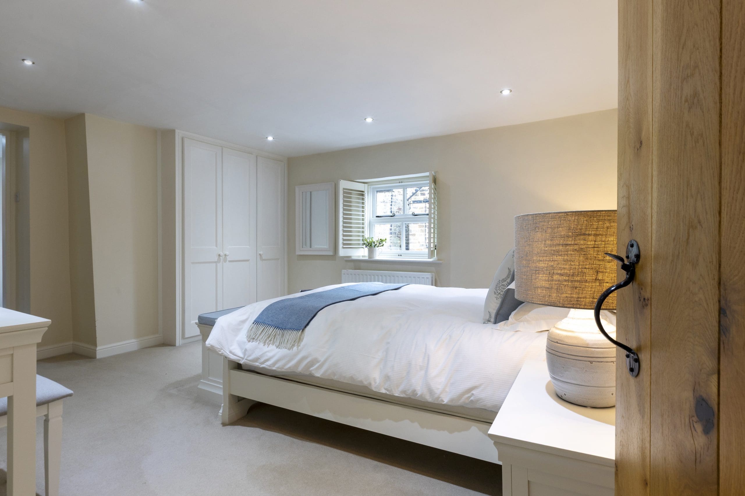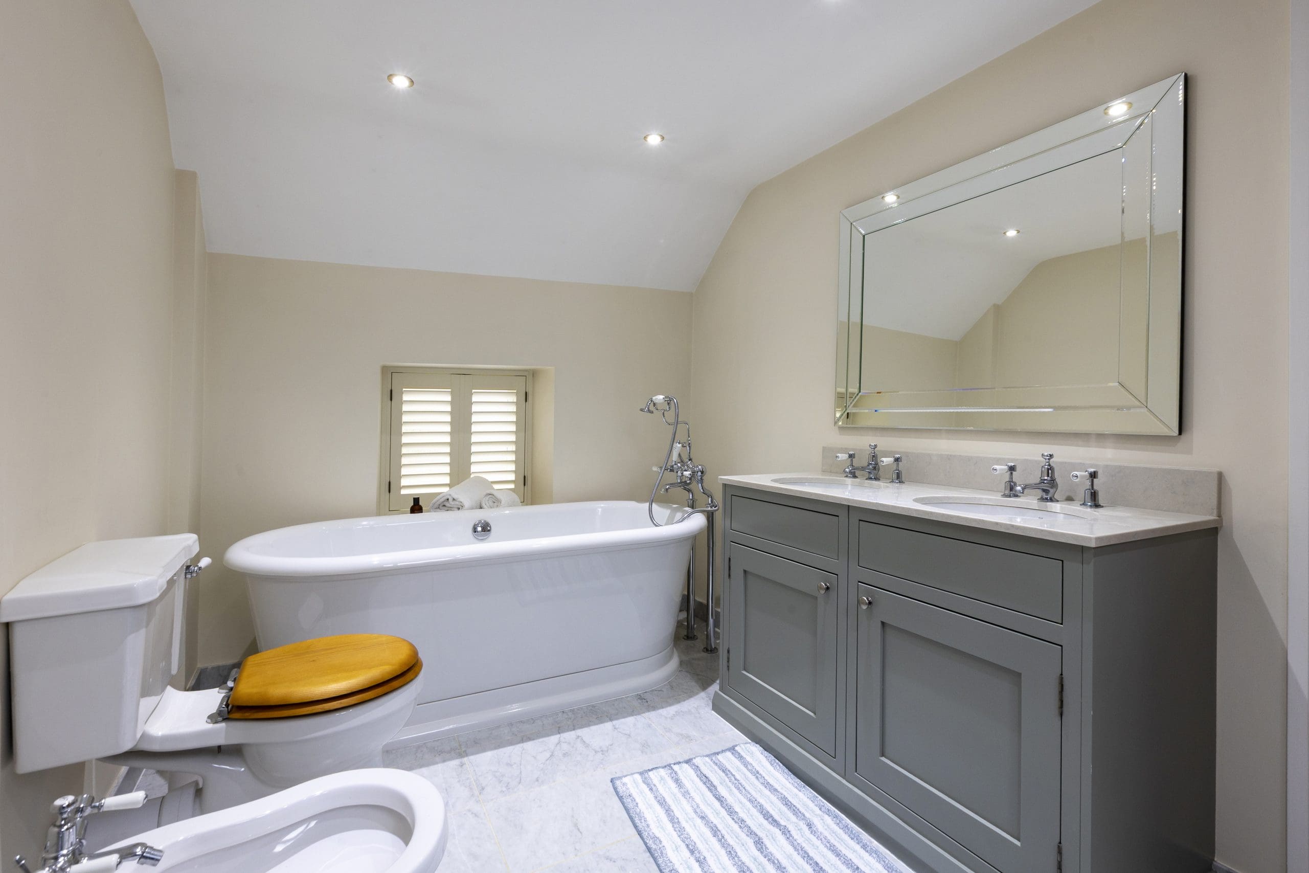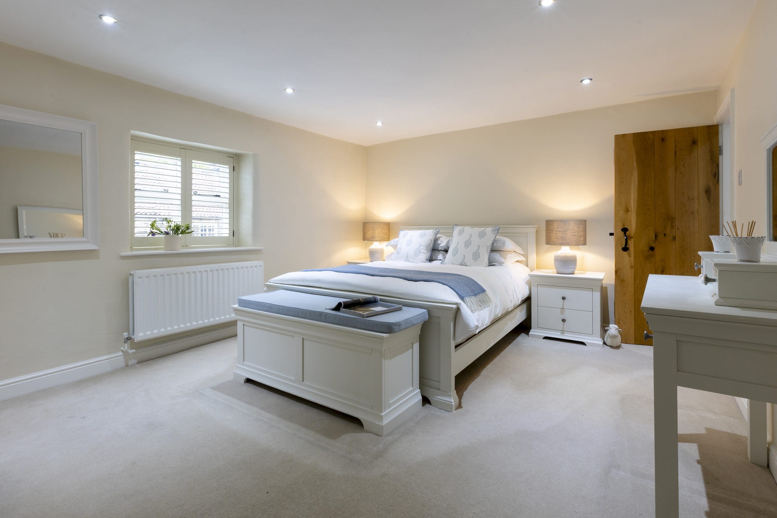 Upstairs, tranquillity reigns across four beautifully appointed bedrooms, which have each been designed with your total comfort in mind. Sink into soft linens, rest your head against plush pillows, and relax in the soothing tones of each inviting space – exactly what you need after a long day of invigorating countryside exploration! The master bedroom has a king sized bed with door leading through to the family bathroom featuring a stunning walk-in shower and a luxurious roll-top bath beside a shuttered window – perfect for a soothing soak, surrounded by the whispers of nature. On the other side of the family bathroom is a bedroom with superking bed that can be made up as a double or twin, default is a superking and please request if you would like made up as twins on booking. There are two other bedrooms one having a small double in it and the other is a single room which will ensure a comfy stay for all other house guests. There is second bathroom with shower on the ground floor for guests using these two bedrooms.