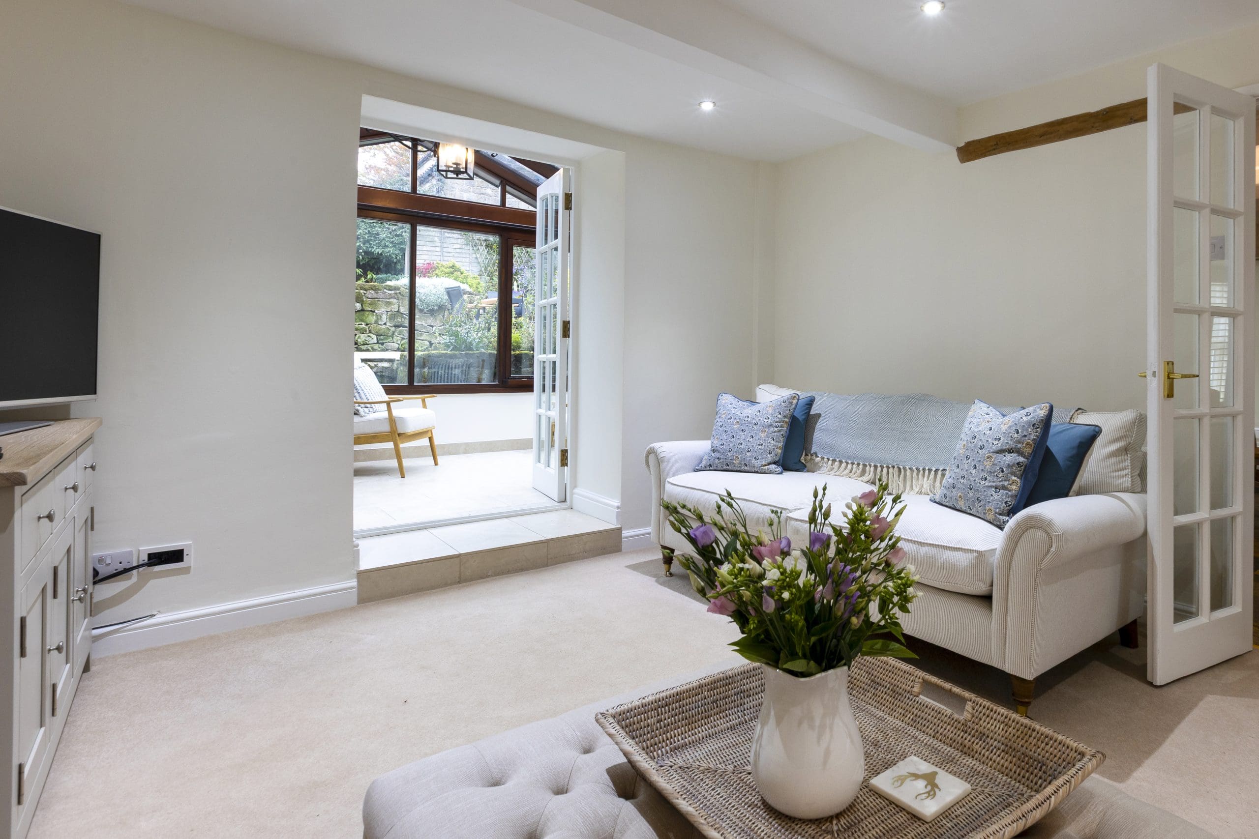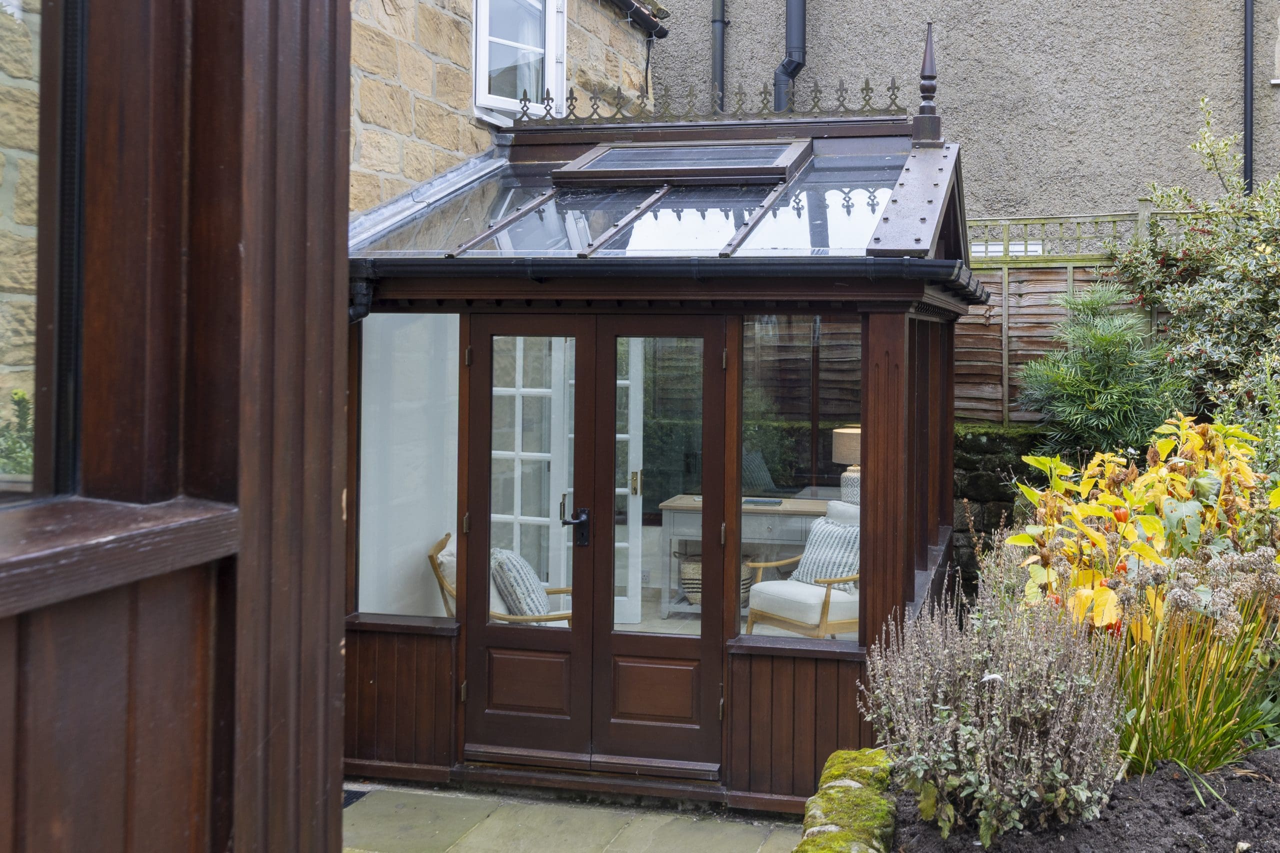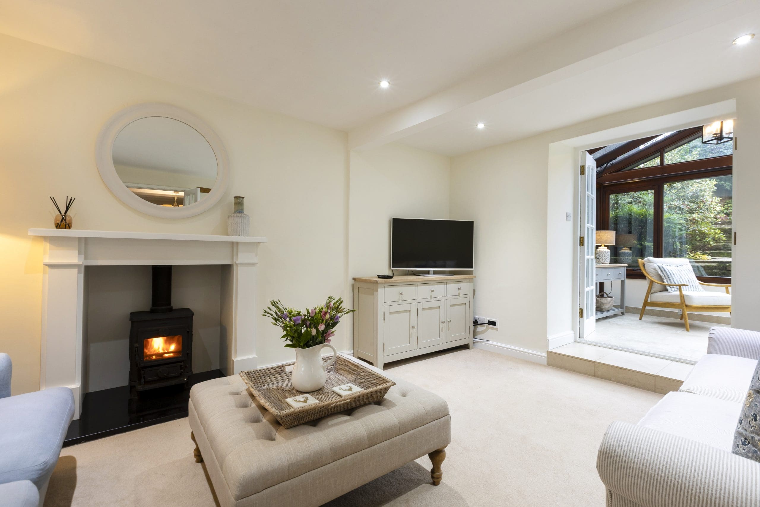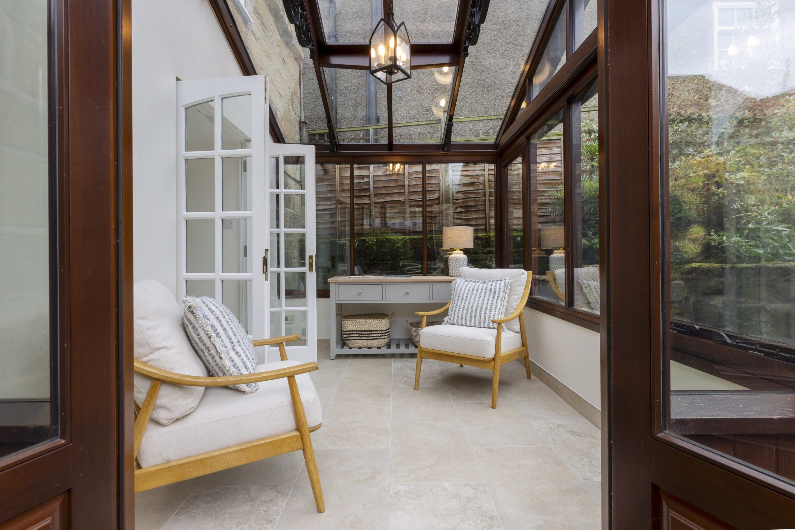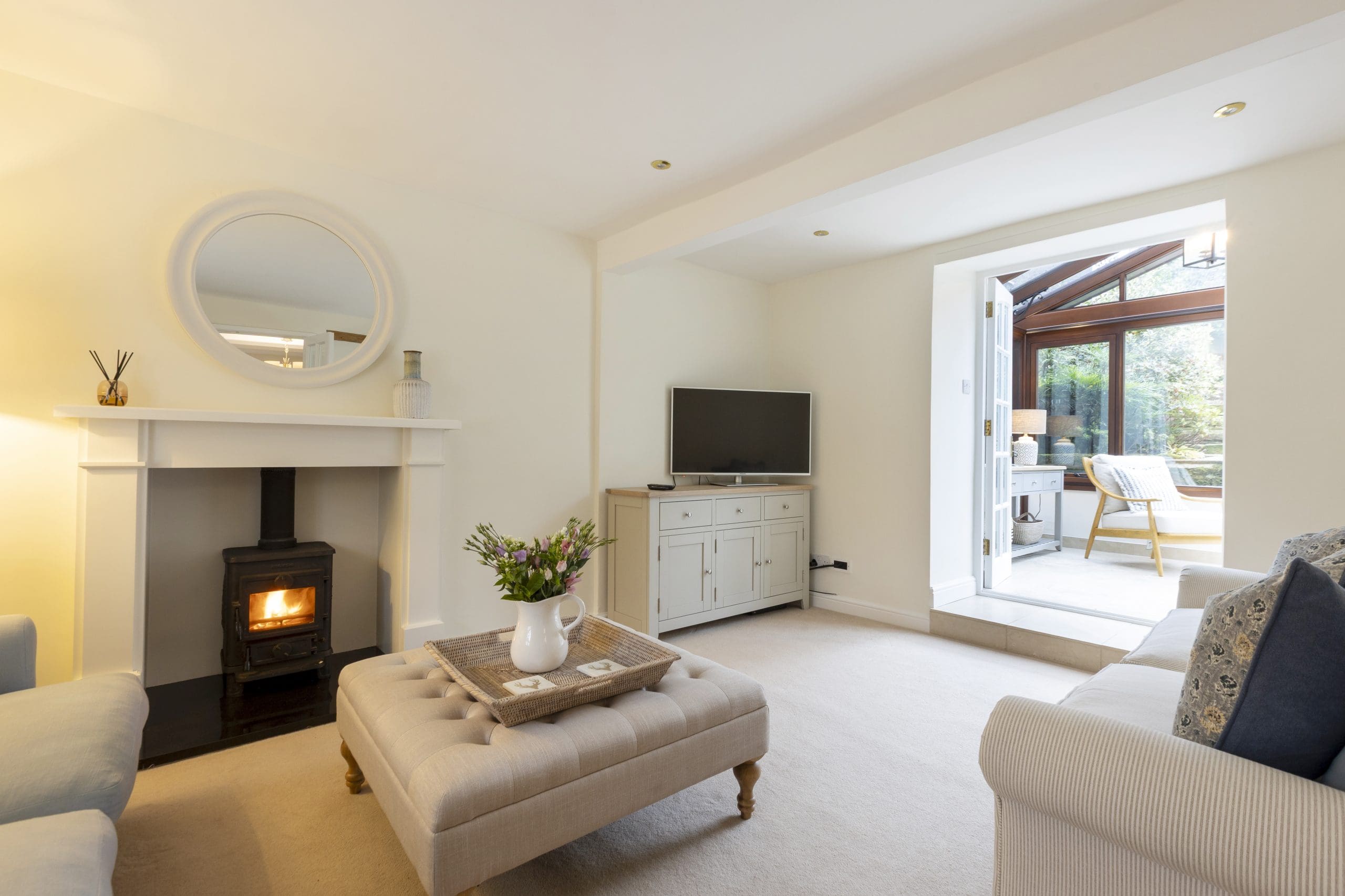 Double glass doors lead through to the sitting room and on through to small conservatory with seating.