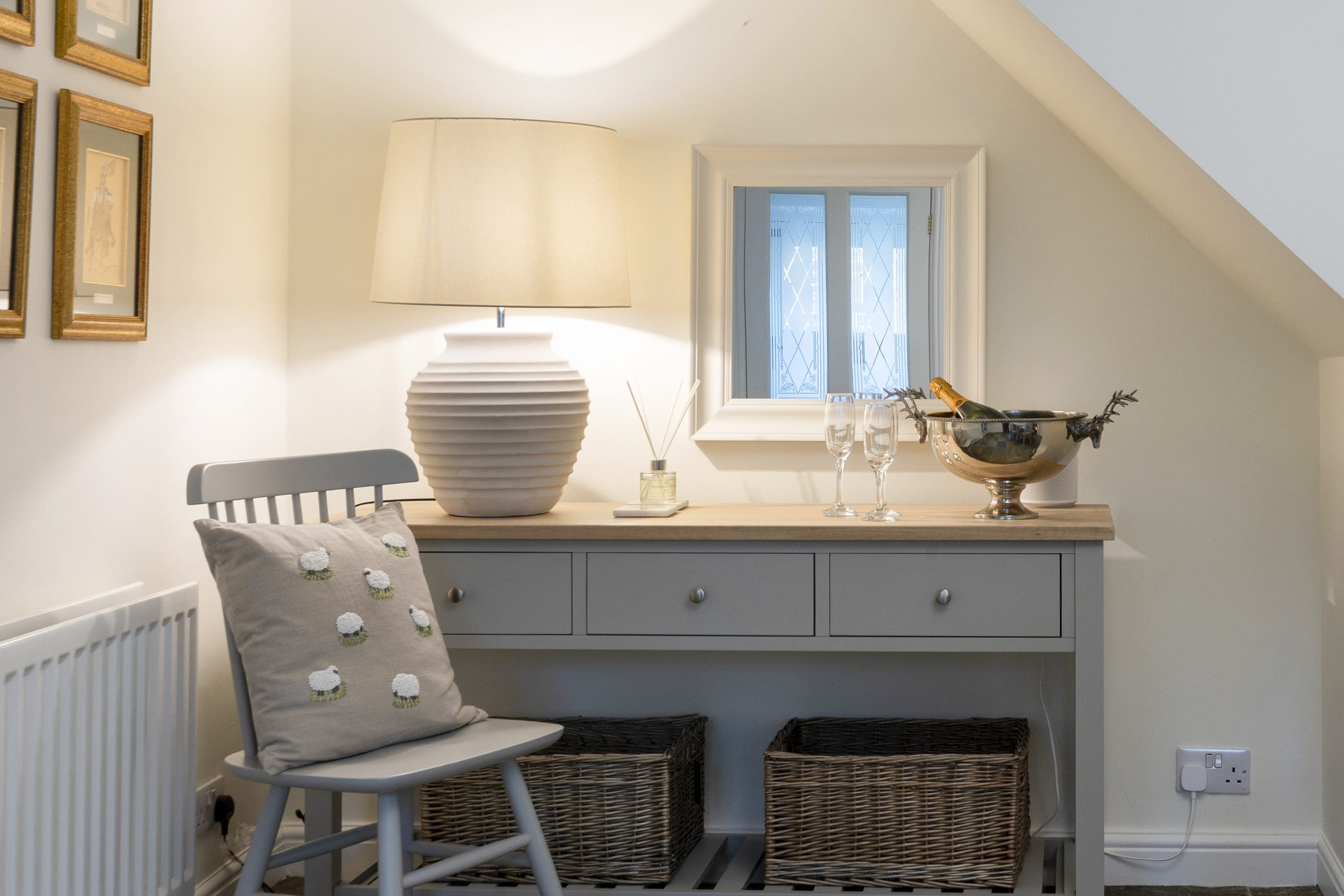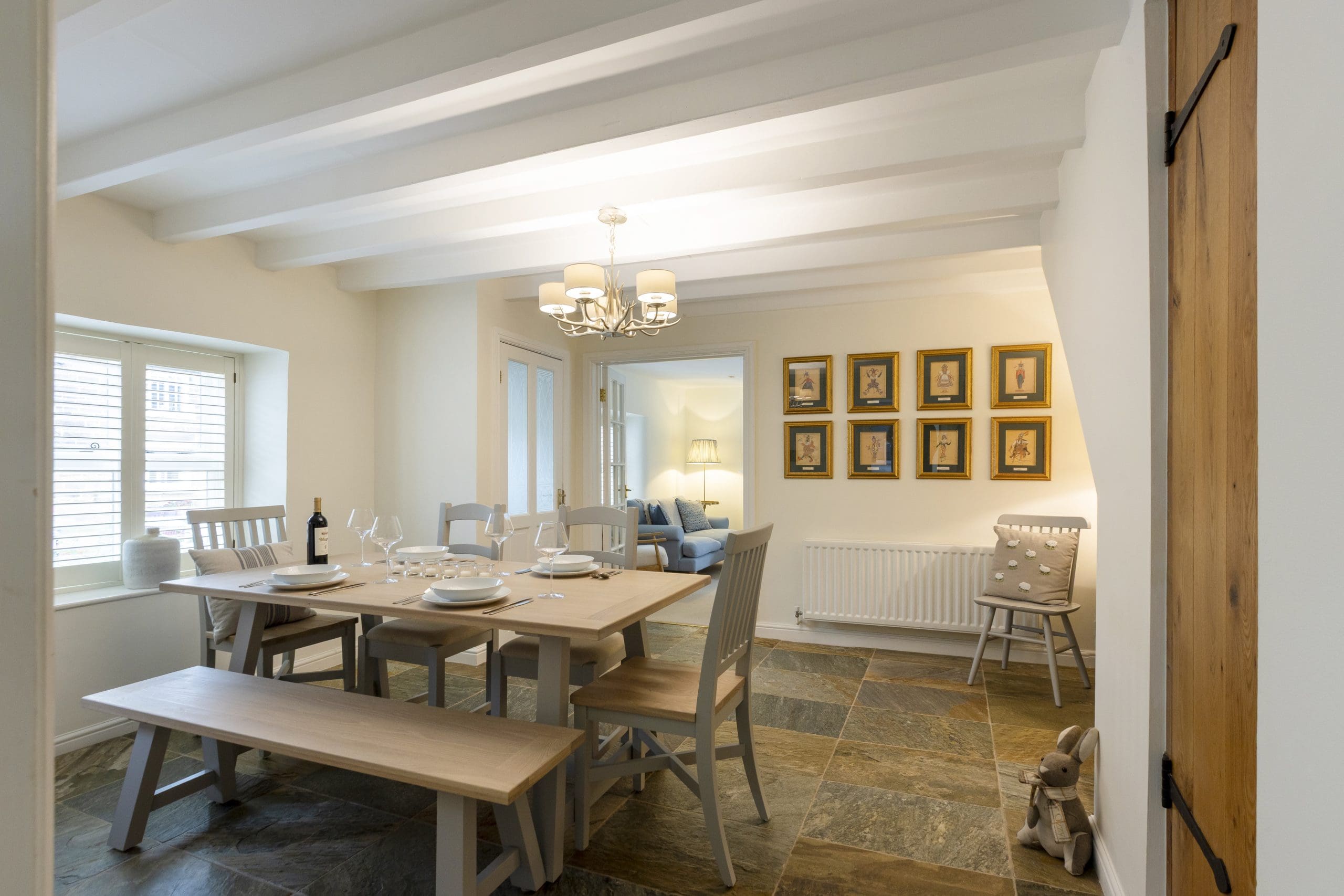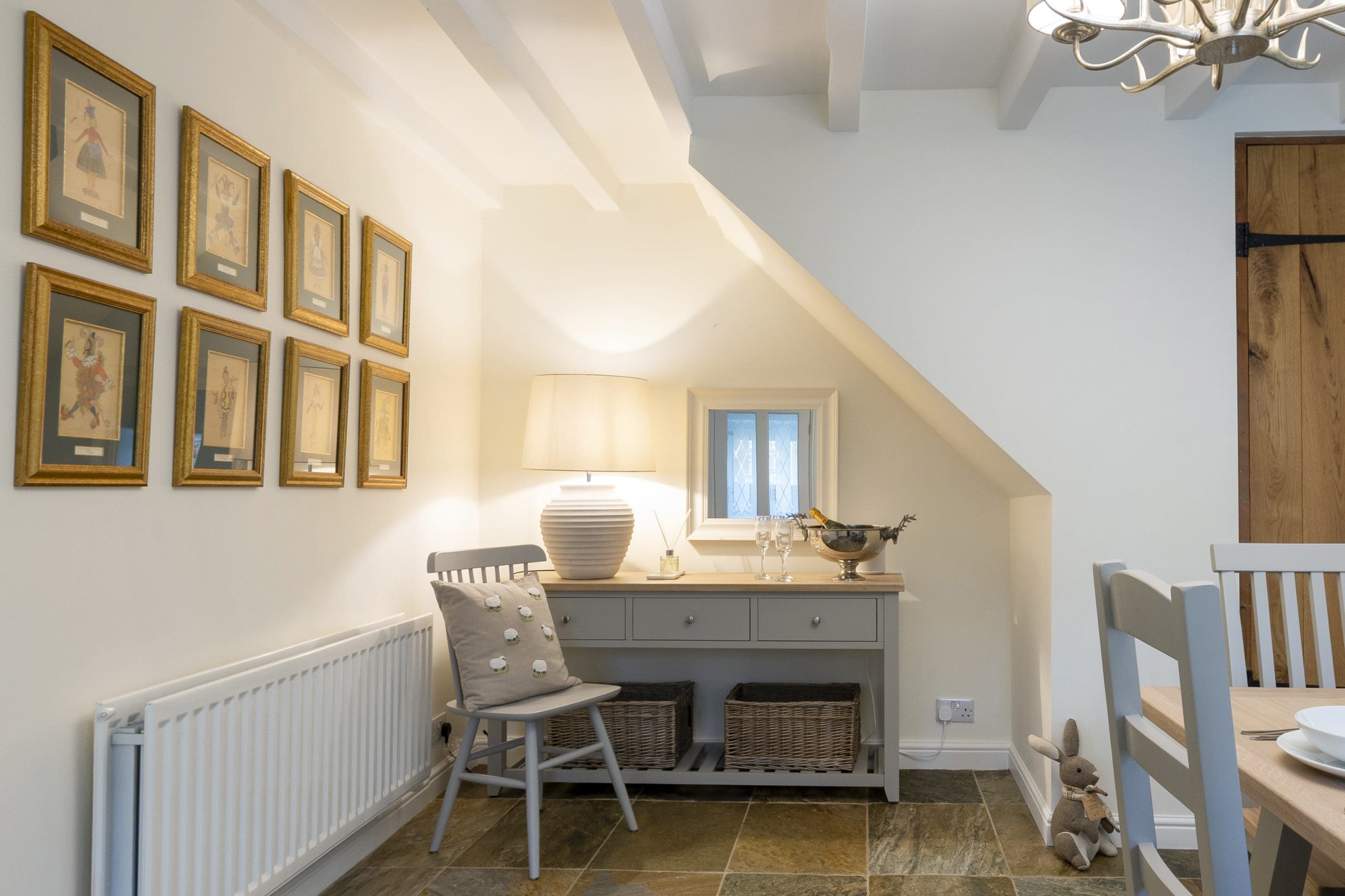 The heart of Fortune Cottage is its welcoming, warm and cosy country kitchen. It is here that you can gather together around the oak table for leisurely breakfasts or prepare sumptuous sociable dinners using the modern electric double oven and induction hob. The built-in fridge, freezer, dishwasher, and washing machine ensure effortless convenience throughout your entire stay, while your morning coffee feels extra special thanks to the Nespresso machine! For larger gatherings, the cottage’s dining room offers stylish seating for six, as well as a glowing wood burner to add to the atmosphere when it’s time to celebrate, feast, and toast life’s greatest moments!
