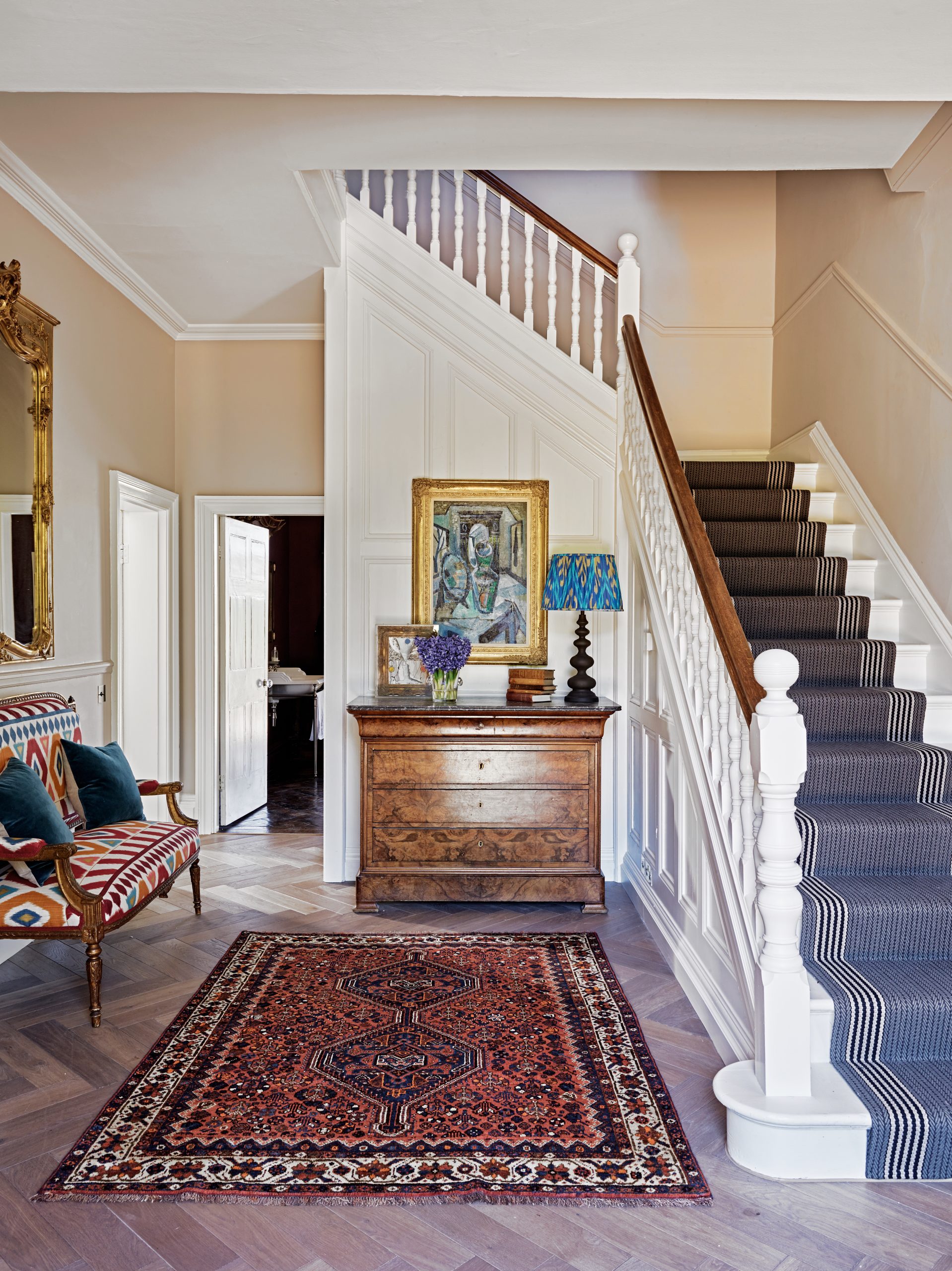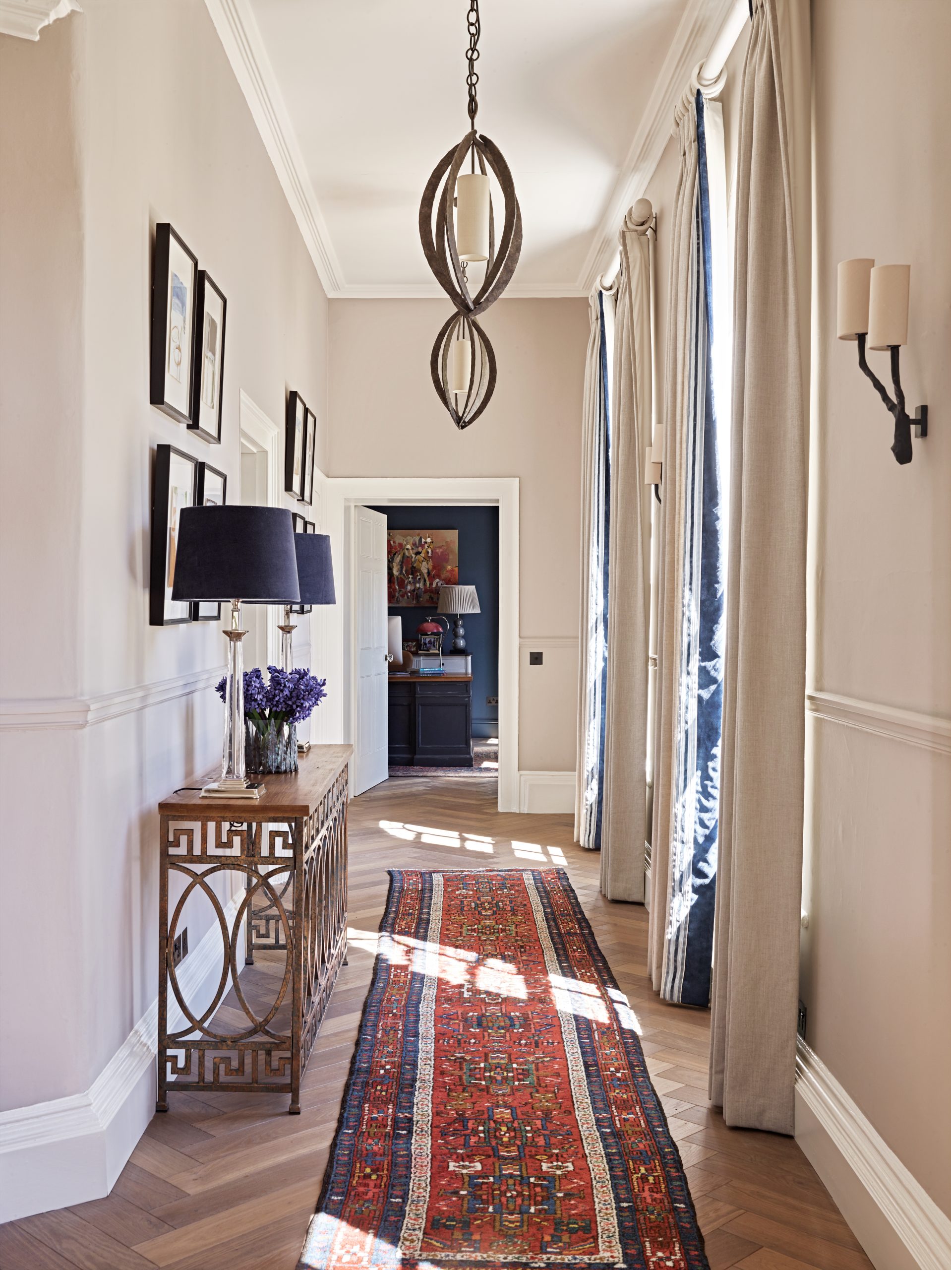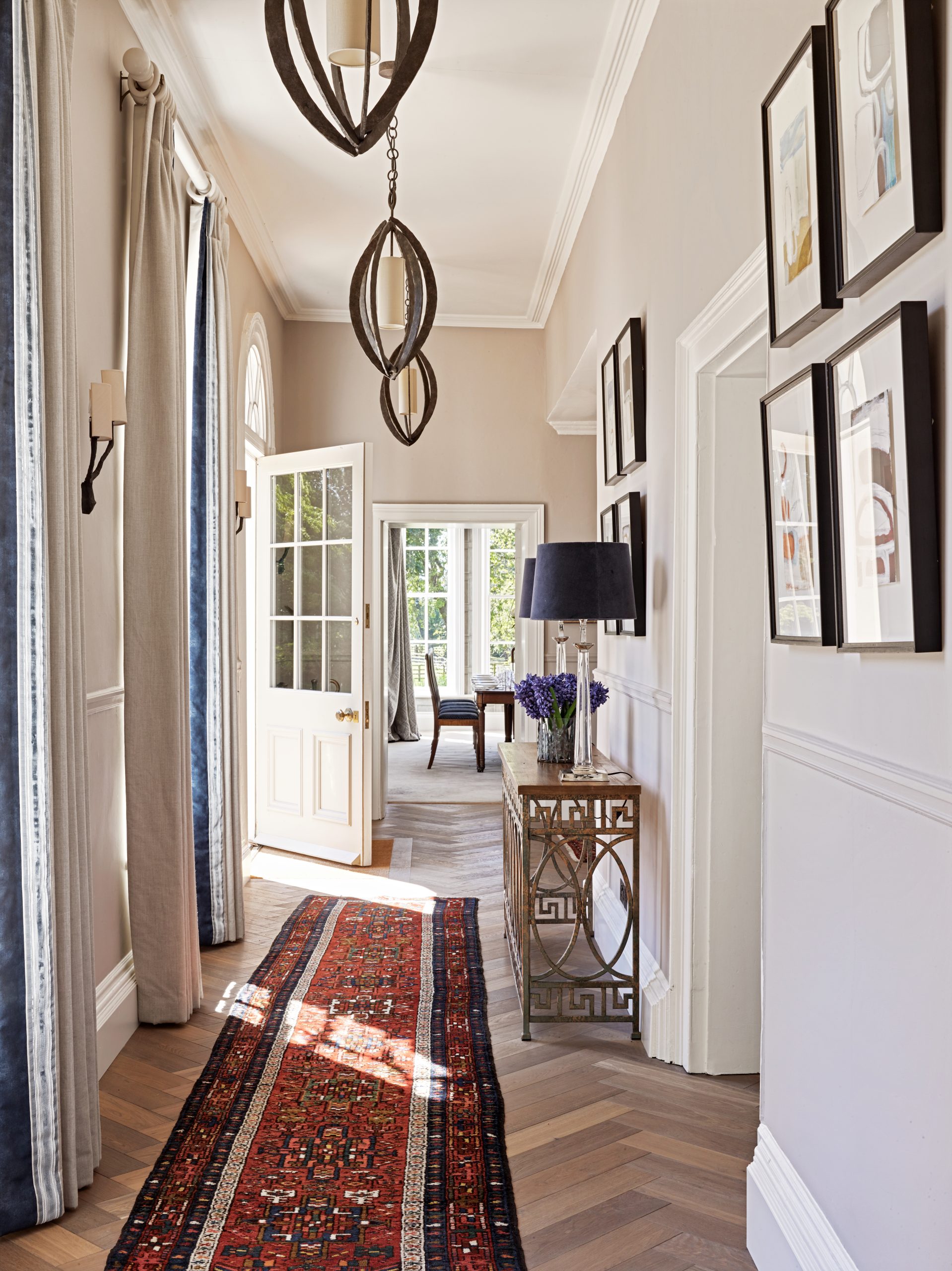 The large Entrance Hall leads through to a modern bright fully equipped Kitchen with an aga, island and round kitchen table.