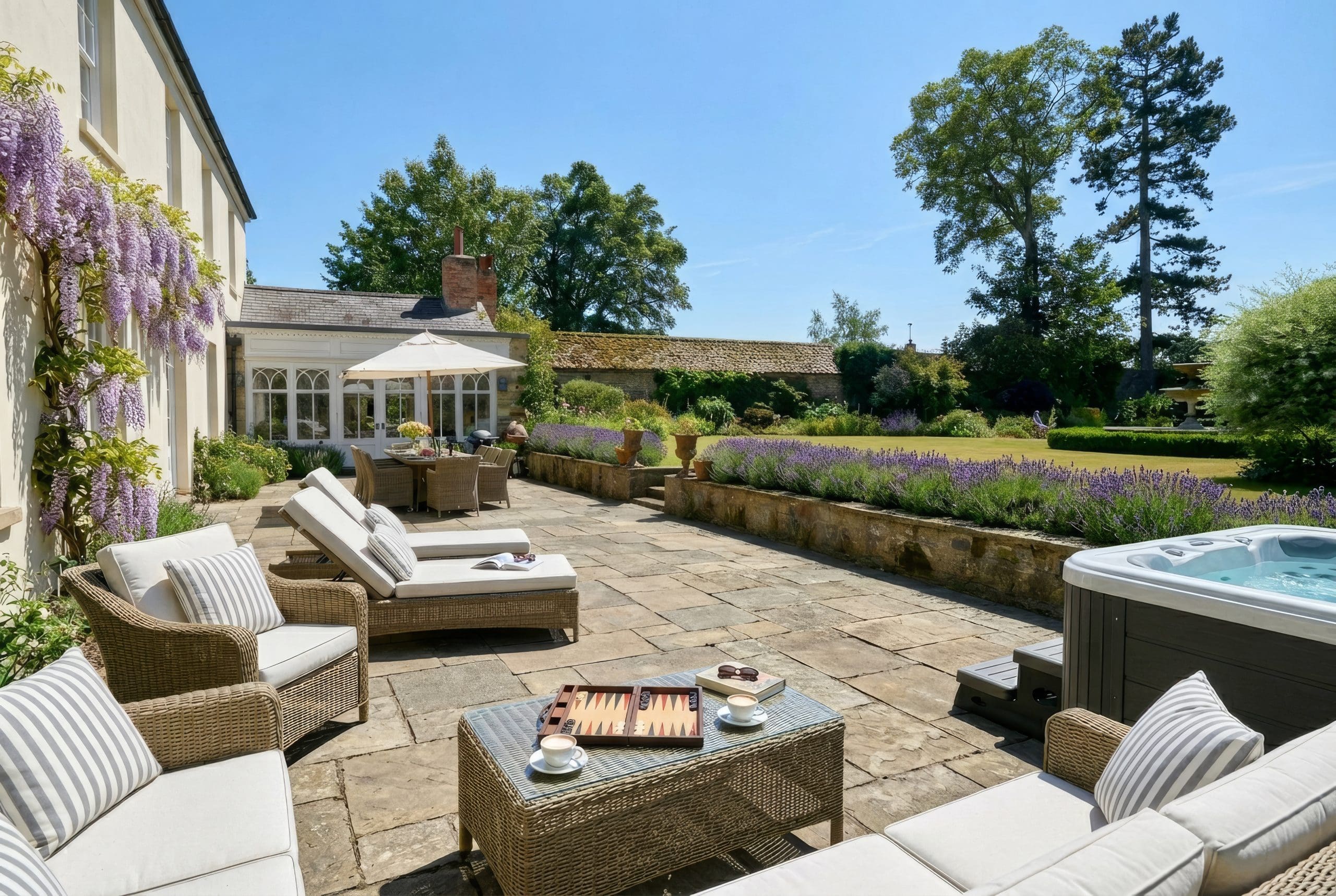 During your stay, you will have access to the full house and grounds with a beautiful walled garden and outdoor sun loungers to relax on. Inside, there is a wonderful conservatory room with a large L-shaped sofa and comfortable armchairs, a log burner and television with French windows again leading out to the terrace. This room also leads out through an arched door to a covered outside passage to the front of the house with beautiful gardens here too. The Drawing Room, with its large comfy sofas and open fireplace, is also situated off the hall and is a wonderful entertaining room with a snooker table for games nights. Please note there is a hot tub on site for an additional fee of £150.00. Please request upon booking if you would like access and to make payment.