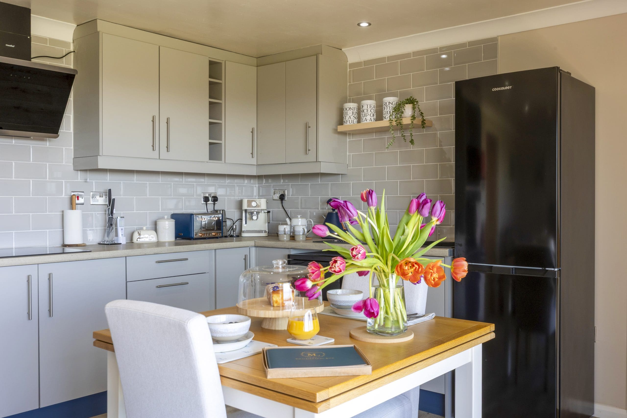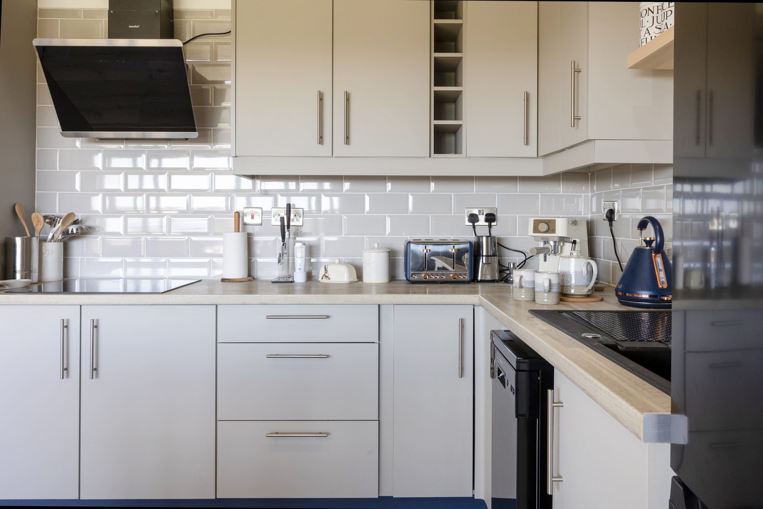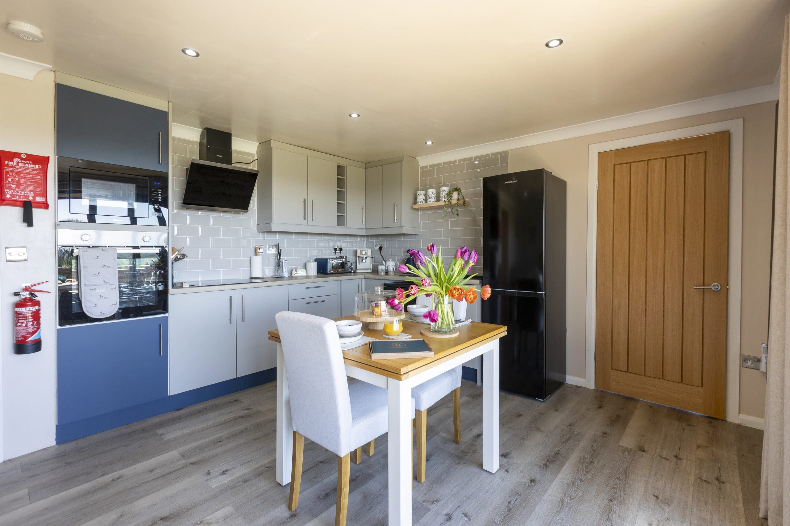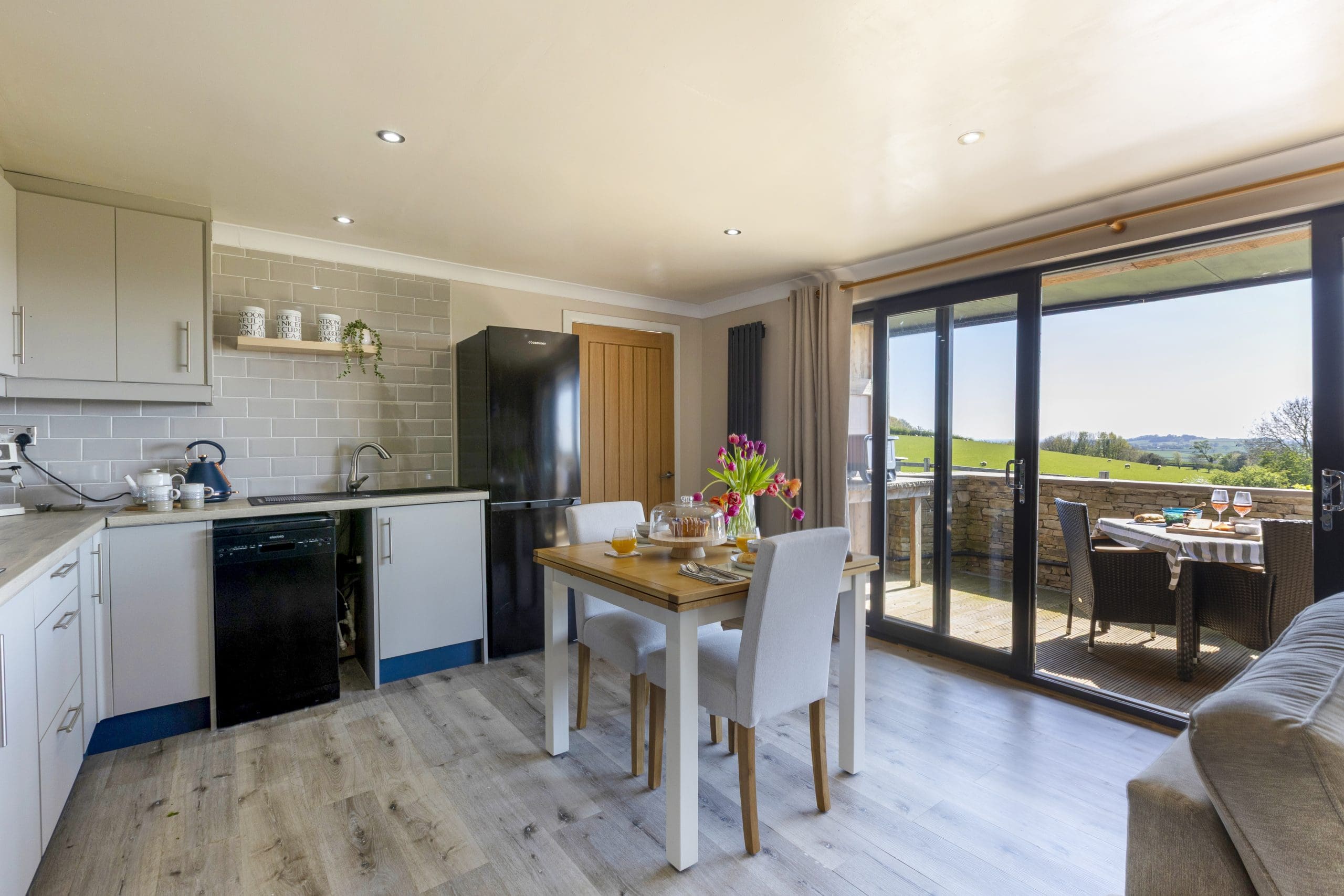 Slow mornings and long, lingering evenings come naturally here at Taras Sarn Lodge. The beautiful kitchen is fully equipped with everything you need to prepare a simple breakfast and an indulgent suppers for the two of you. With special touches throughout, like a barista coffee machine, NutriBullet, and an array of quality cookware, making meals together will be a dream. You’ll also find some tasty local treats waiting for you on arrival including tea, coffee, fresh bread, butter, jam, eggs, and a bottle of Yorkshire wine, so there’s no need to leave your lodge for a while. The intimate table for two is positioned perfectly for you to drink in the sweeping views beyond the glass doors as you eat, or just step outside to the covered veranda if you fancy dining al fresco – whatever the weather. The outdoor Ninja Pizza oven invites relaxed dining as the sun sets over the Vale of York.